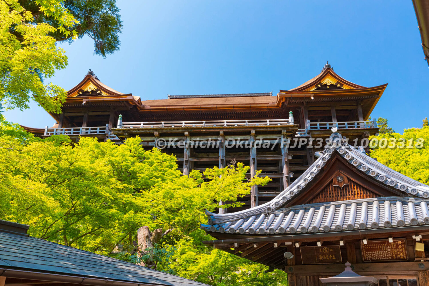 ユネスコ世界文化遺産, ユネスコ世界遺産, 世界文化遺産, 世界遺産, 京都市, 京都府, 古都京都の文化財, 名所, 国宝, 寺, 新緑, 日本, 春, 昼, 晴れ, 本堂, 東山区, 清水, 清水の舞台, 清水寺, 舞台, 青空