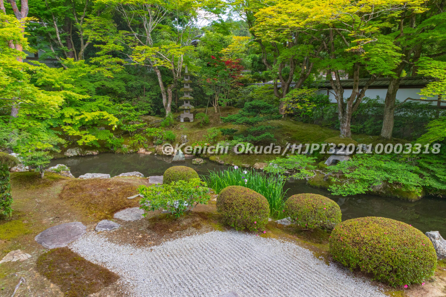 京都市, 京都府, 京都府の有形文化財, 京都府指定有形文化財, 位牌, 勅使門, 奉安, 寺, 寺務所, 尊牌, 府の有形文化財, 府指定有形文化財, 庭, 庭園, 御寺, 御座所, 御座所庭園, 新緑, 日本, 日本庭園, 春, 春もみじ, 昼, 晴れ, 曇り, 本坊, 東山区, 歴代天皇, 池, 泉涌寺, 泉涌寺山内町, 皇后, 皇室, 皇室香華院, 皇族, 菩提寺, 門, 障子, 霊明殿, 青空