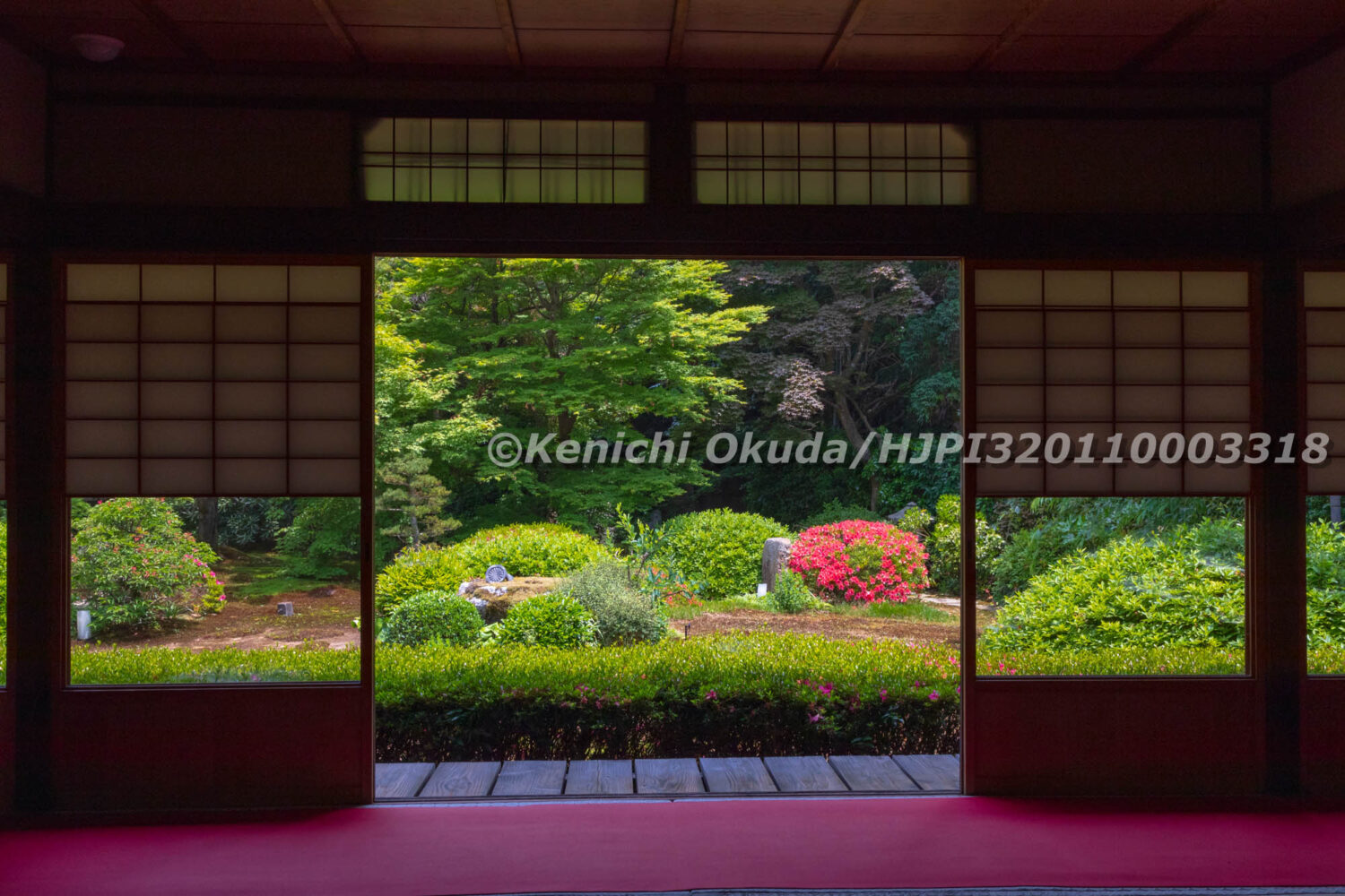 027_599 泉涌寺 雲龍院 蓮華の間とサツキ咲く庭園